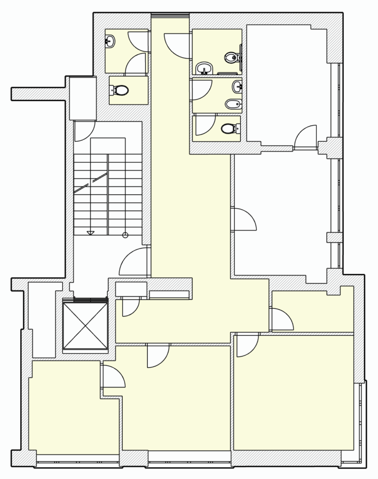 Prostory se nachází ve 4. nadzemním podlaží a jsou přístupné z vnitřní chodby budovy. Dispozičně jsou tvořeny čtyřmi místnostmi s možností variabilního využití dle potřeb nájemce. Tři ze čtyř místností mají samostatný vstup ze společné chodby.