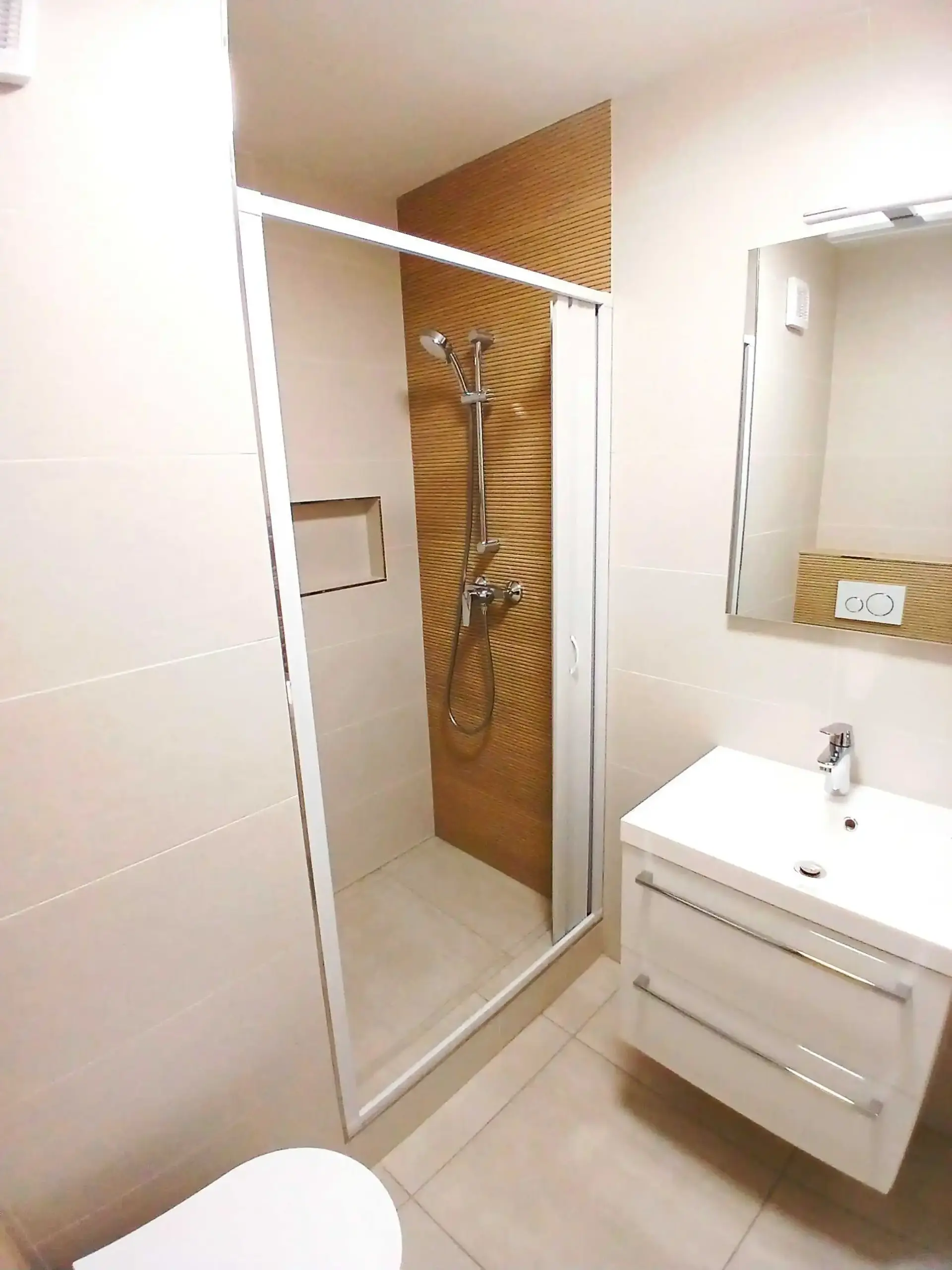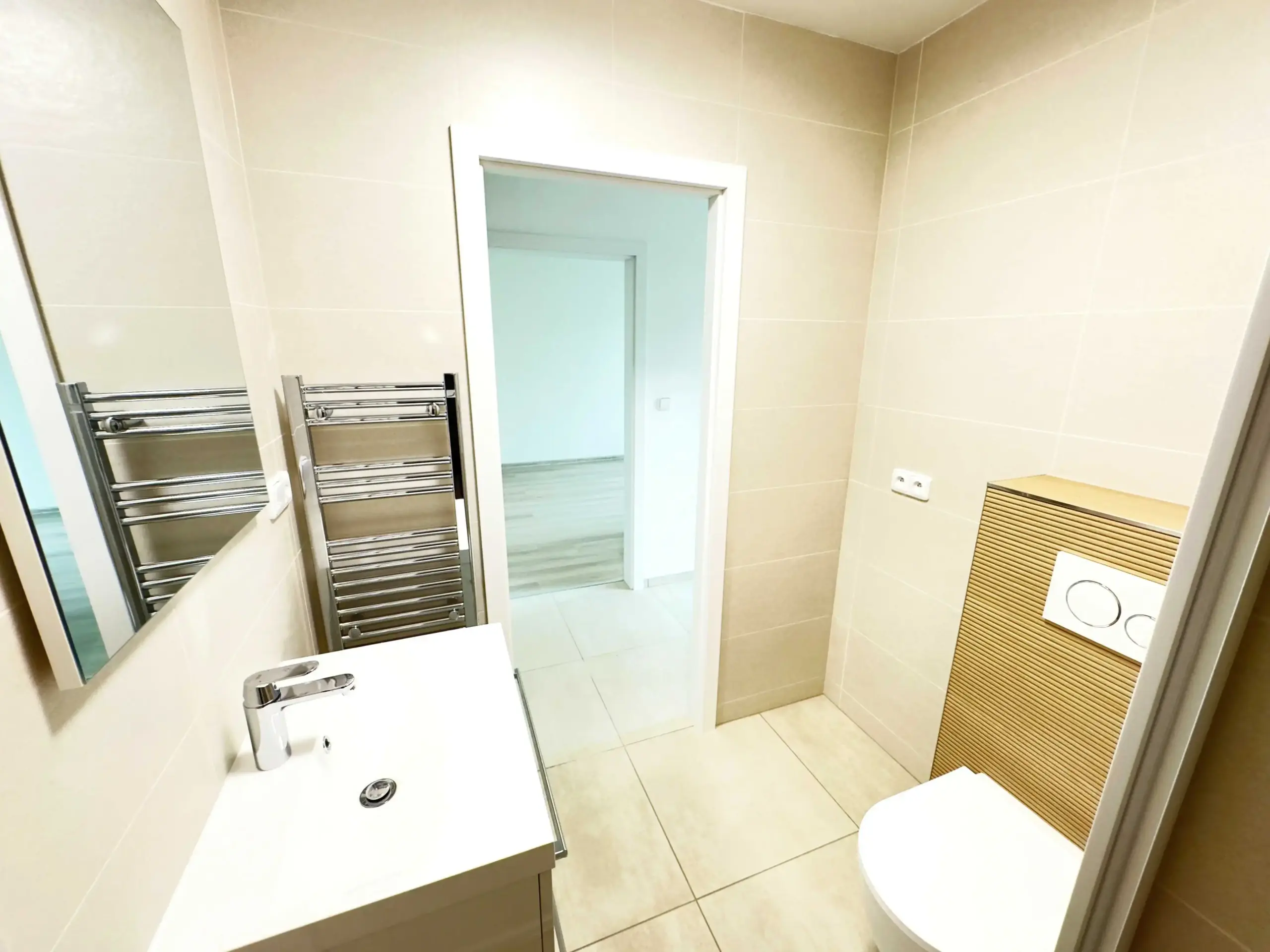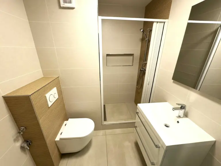 Byt prošel kompletní rekonstrukcí a nabízí moderní interiér s novými podlahami, elegantní koupelnou se sprchovým koutem a toaletou. Nová kuchyňská linka je vybavena indukční varnou deskou, vestavnou horkovzdušnou troubou, digestoří a lednicí. Prakticky navržený úložný prostor umožňuje pohodlné uskladnění veškerého kuchyňského vybavení.